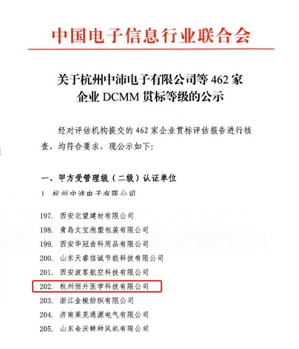 杭州恒升醫(yī)學(xué)有限公司成功通過DCMM2級貫標認證簡報