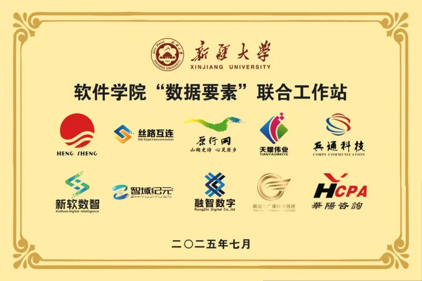 2025年7月11日來(lái)自新疆大學(xué)軟件學(xué)院、新疆原行網(wǎng)智慧文旅有限公司、新疆生產(chǎn)建設(shè)兵團(tuán)通信科技中心有限公司、新疆絲路互連數(shù)字產(chǎn)業(yè)發(fā)展有限公司、新疆智域紀(jì)元科技有限公司、新疆融智數(shù)字經(jīng)濟(jì)產(chǎn)業(yè)發(fā)展有限公司、烏魯木齊天耀偉業(yè)信息技術(shù)服務(wù)有限公司、恒升醫(yī)學(xué)科技股份有限公司、新疆新軟數(shù)智科技有限公司、天山農(nóng)商銀行、新疆華陽(yáng)有限責(zé)任會(huì)計(jì)師事務(wù)、新疆聚廣律師事務(wù)所等單位負(fù)責(zé)人,共同為新疆大學(xué)軟件學(xué)院“數(shù)據(jù)要素聯(lián)合工作站”成立揭牌。